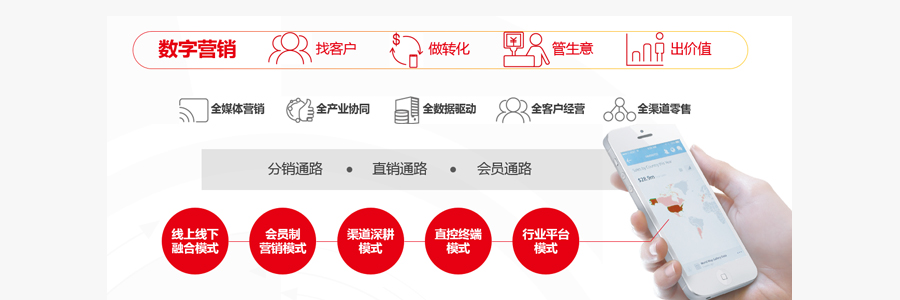幫助企業(yè)實現(xiàn)立體化的多元渠道深度分銷管理,確保對渠道的掌控和管理完整、到位。打破線上線下壁壘,實現(xiàn)無差別銷售。突破企業(yè)對經(jīng)銷商的依賴,構(gòu)建企業(yè)到消費者之間全渠道直銷通路。
