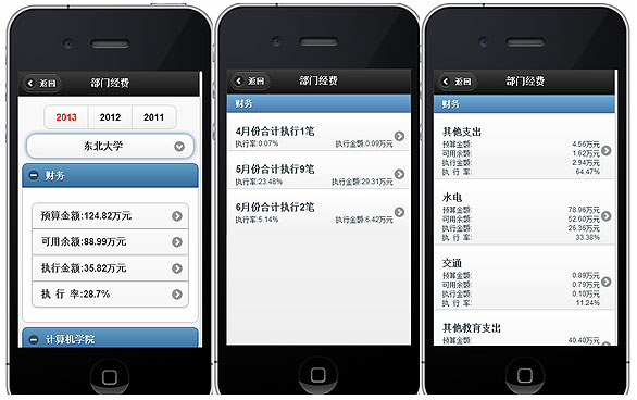 滿足非財務(wù)部門負(fù)責(zé)人、項(xiàng)目經(jīng)辦人對預(yù)算、預(yù)算分配執(zhí)行情況、項(xiàng)目支付情況、報銷情況、個人名下資產(chǎn)情況自助查詢,支持手機(jī)設(shè)備。