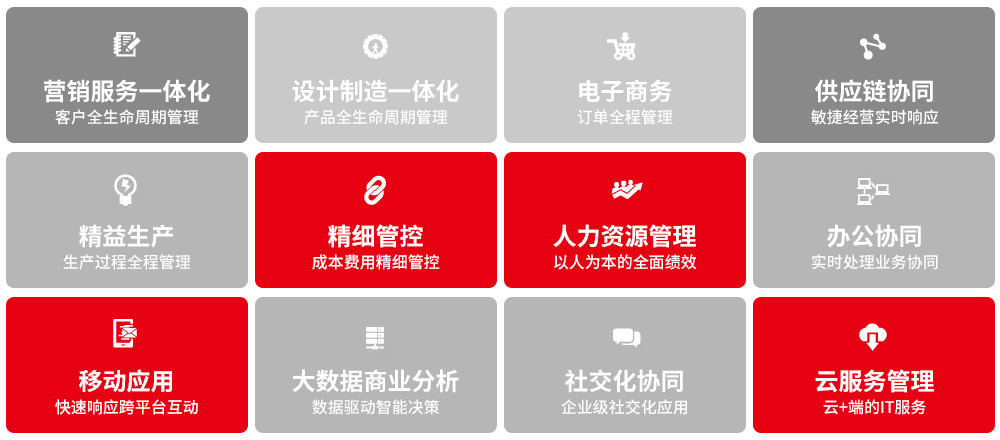 我們向您提供覆蓋企業(yè)各個經(jīng)營及管理環(huán)節(jié),高顆粒度的應(yīng)用方案及產(chǎn)品。