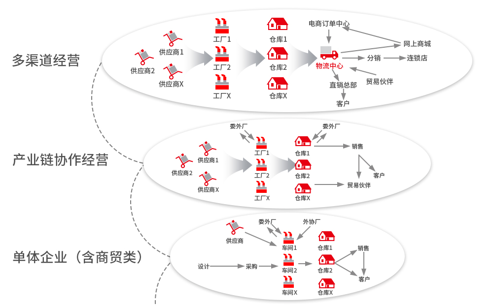 支持各類企業(yè)全生命周期的經(jīng)營與管理,包括單體(含多工廠)產(chǎn)業(yè)鏈協(xié)作經(jīng)營,多渠道經(jīng)營的工業(yè)及商貿(mào)企業(yè)。