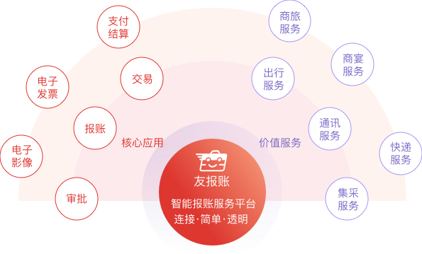 友報賬為企業(yè)提供專業(yè)化的報賬服務(wù)和連接服務(wù),創(chuàng)造企業(yè)財務(wù)新價值。作為企業(yè)財務(wù)數(shù)據(jù)采集終端,面向企業(yè)全員應(yīng)用,并整合社會資源,為企業(yè)員工提供端到端的一站式互聯(lián)網(wǎng)服務(wù),打通從申請、審批、交易、報賬、支付、核算、報告所有環(huán)節(jié),實現(xiàn)數(shù)據(jù)不落地,全線上應(yīng)用,全程管控